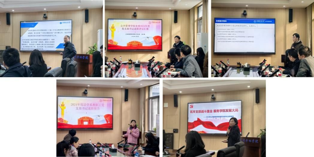 5位教职工党支部书记、15位学生党支部书记依次进行述职汇报,汇报内容紧紧围绕学习贯彻习近平新时代中国特色社会主义思想,对照党支部建设“七个有力”要求和学校教职工党支部、学生党支部考核评价指标体系,从2024年度支部主要工作、存在的突出问题和下一步工作打算等方面进行汇报。学院党委委员、领导班子认真听取报告,充分肯定各师生党支部书记的履职表现,给各支部未来工作开展明确了方向和重点。