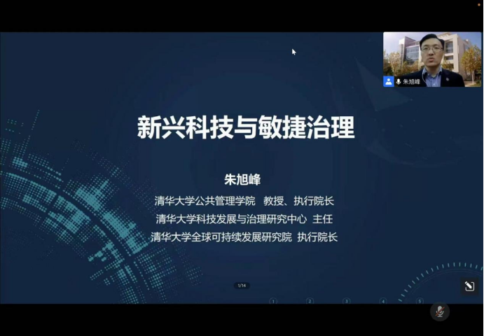 执行院长朱旭峰应邀为我校师生作题为“新兴科技与敏捷治理”的线上学术讲座。讲座由胡守庚院长主持。