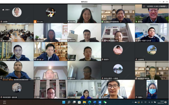 讲座结束后,王占岐教授对黄贤金教授的精彩学术报告进行了评论与总结,他认为双碳治理与国土空间规划研究紧贴时代主题,也是当今学术界所关注的热点问题,同时也呼应了二十大报告中习总书记所提到的绿色低碳发展。胡守庚院长对黄贤金教授长期以来对学院的学科发展、专业建设等方面的支持与帮助表示衷心感谢。