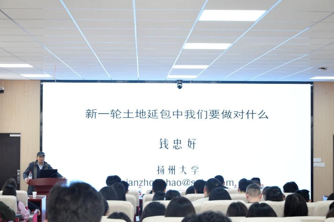 “公管大讲堂”,以“新一轮土地延包中我们要做对什么”为题开讲。杨剩富主持讲座,讲座吸引百余名师生参加。