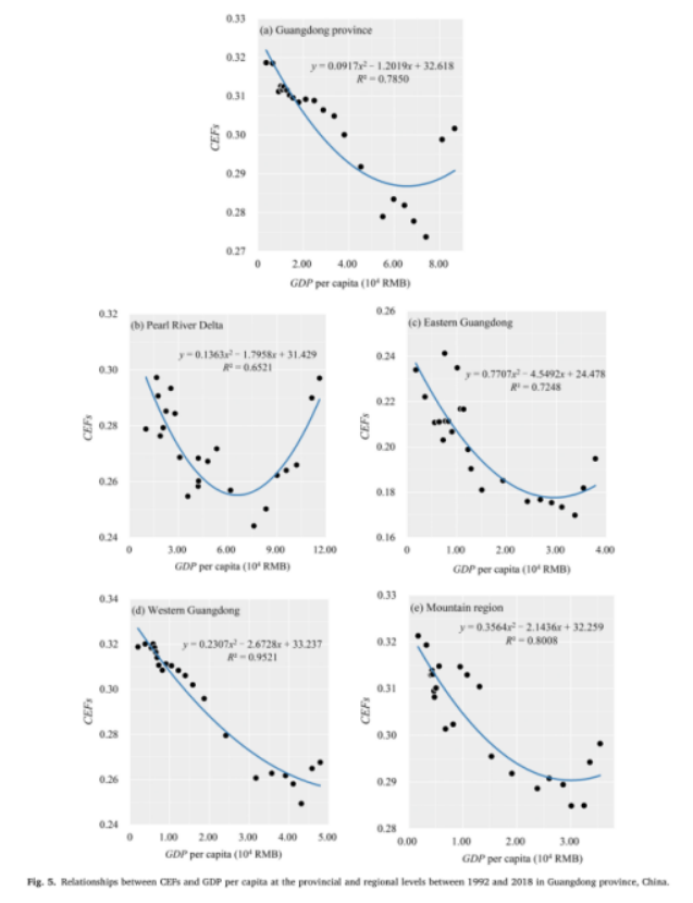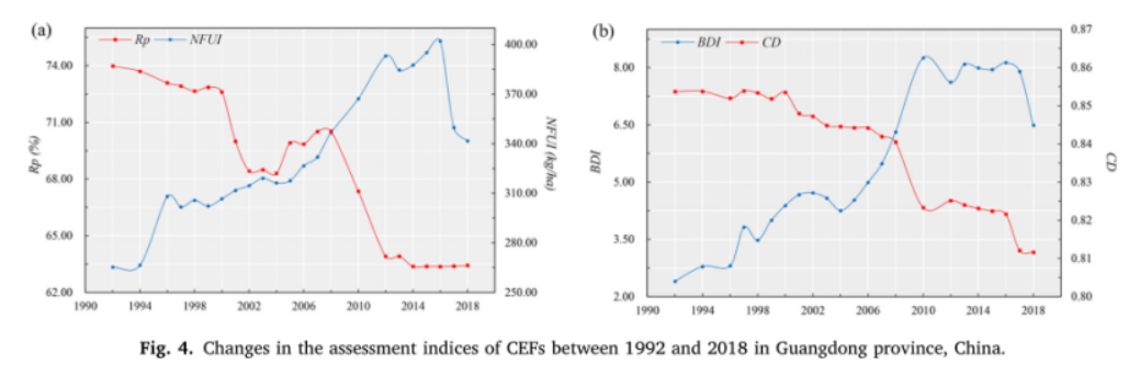 CEFs在省级和区域层面的转折点年份在2010年左右。本文将FTCE分为1992-2010年和2012-2018年两个阶段,并计算FTCE度(TDCEF)。结果表明,TDCEF在省级层面为1.83,区域差异显著。其中珠三角地区TDCEF为4.05,粤东地区次之,粤西地区为1.13,山区为1.07。3.FTEC的基本机制单因素分析和回归模型的结果表明,随着人均GDP的增加,FTCE出现了明显的由快速消费向恢复性增长的转变。气候变化是对CEFs变化影响最大的物理环境因子。但回归结果表明,由于研究周期只有26年,AT和AP两个气候因子对CEFs的变化没有显著影响。因此,人类活动对CLU的影响是导致CEFs变化的主要原因。农民的CLU活动本质上是农业生产替代的结果,是对耕地资源稀缺和农产品市场需求的回应。具体来说,农民倾向于用低成本投入取代高成本投入,用高回报作物取代低回报作物。从指数的变化可以归纳为农业投入替代、作物替代和土地利用替代三个方面的CEF变化机制。