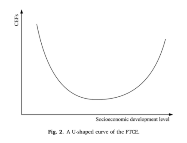 研究方法1. FTCE u型曲线的理论框架考虑到发达国家人类对耕地的多种需求和多功能土地使用经验,在保持社会生态服务稳定增长的同时,应提高社会获取安全优质农产品的能力,这些目标要求CLU的生态可持续性。FTCE是指从快速消费向恢复性增长的转变,有利于CLU的生态可持续性。虽然FTCE可能有不同的路径,但本研究中讨论的FTCE被视为从快速消费向恢复性增长的转变。这种转变与社会经济条件密切相关。