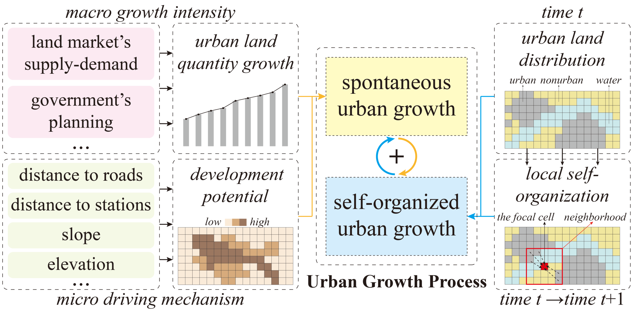 胡守庚教授、张彬副教授等发表系列论文,提出了自然和自组织扩展过程耦合的城市空间扩展模拟方法,为精细化模拟城市空间扩展过程提供了新思路,能够有效支撑国土空间规划和城市更新等工作任务。