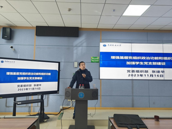 论坛伊始,党委组织部副部长张建华以《增强基层党组织政治功能和组织功能加强学生党支部建设》为题为各学生党务骨干培训。他强调基层是党的执政之基、力量之源,各支部开展工作应以《中国共产党支部工作条例》《中国共产党普通高等学校基层组织工作条例》为遵循,对标“七个有力”强化党支部的基础建设。培训中张老师结合新时代党的建设总要求和长期指导学生党建工作经验,强调党支部要严密组织体系、建强战斗堡垒、提升整体效能来提升党建工作质量,学生党支部书记要精准定位身份职责,要通过切实增强政治意识、认真履行岗位职责、不断提高综合素质能力和持续改进工作作风,努力成为普通党员的模范标杆、支部工作的领航头雁、学生党务的行家里手和学工老师的得力助手。
