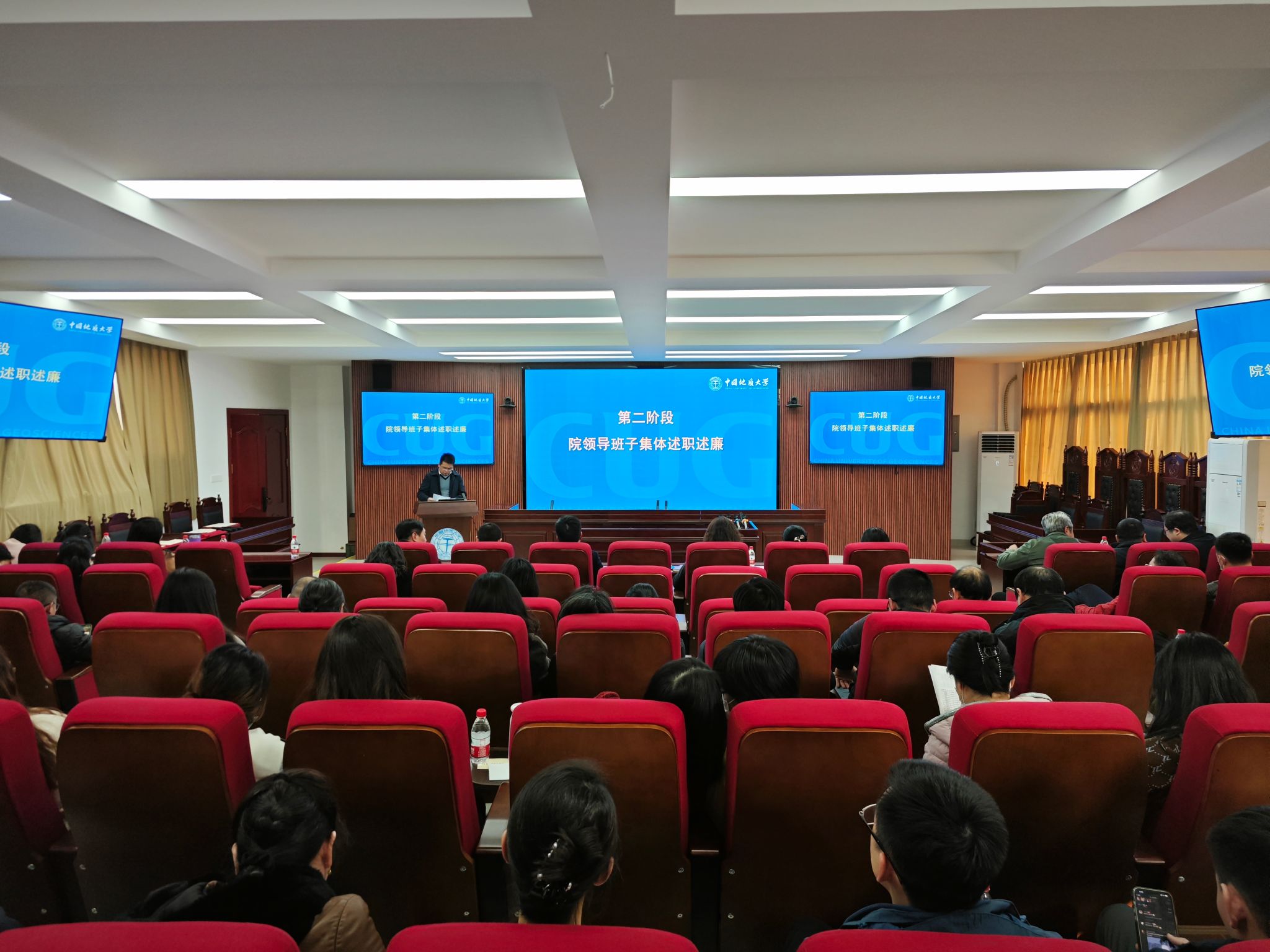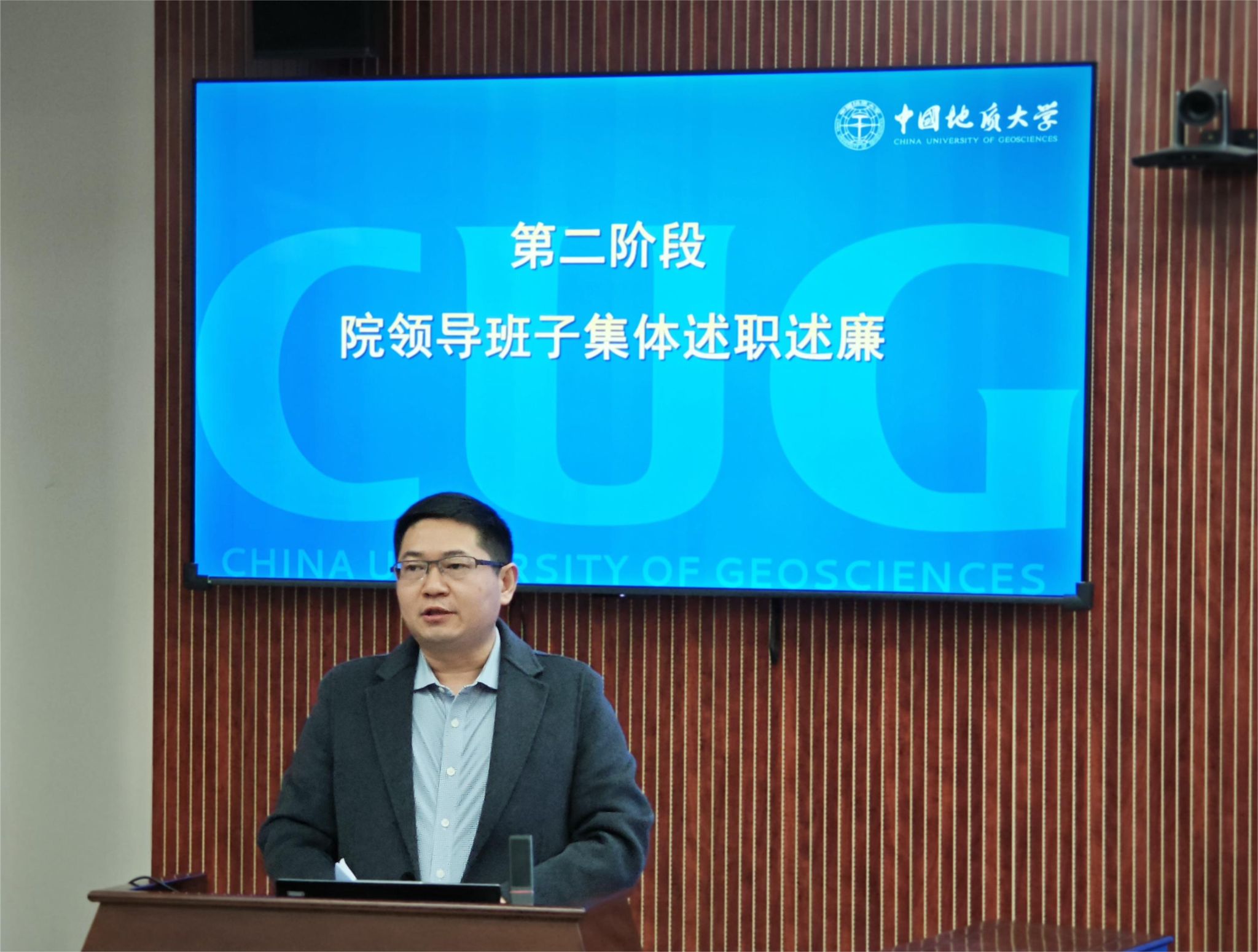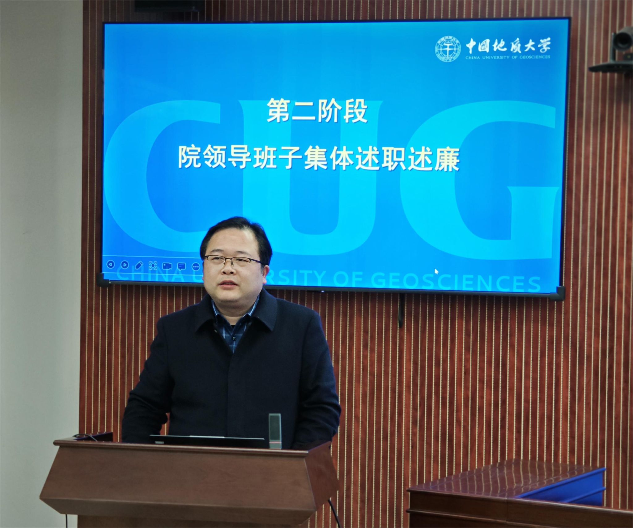 会议第二阶段,学院领导领导班子张宽裕、胡守庚、龚健、王忠、李世祥、朱江洪、龚丽依次述职述廉。