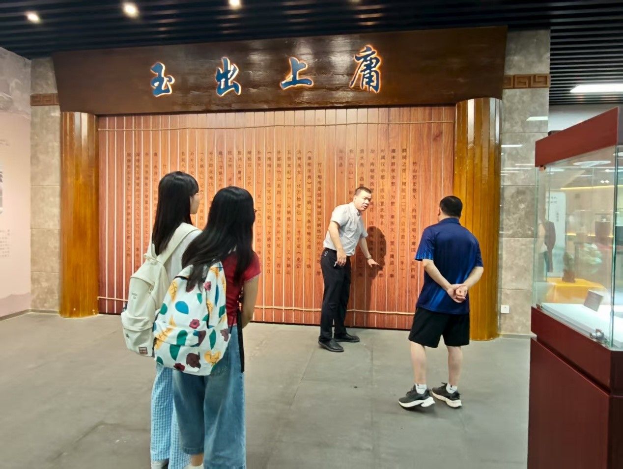 竹山县是享誉全球的“中国绿松石之乡”,为了解当地绿松石特色产业发展情况,实践团在我校驻小河村第一书记马红祥的带领下,先后去往绿松石博物馆、中国绿松石特色小镇和绿松石开采基地进行实地走访和考察,从原料开采、原石公盘、创意加工、电商销售品牌打造、再到国际市场交易,实践团成员见证了在驻村干部的规划和启发下,竹山县的绿松石产业从“卖石头”向“卖宝贝”的华丽转变,成员们深刻体会到,驻村工作不仅在“扶人”更在“扶业”。
