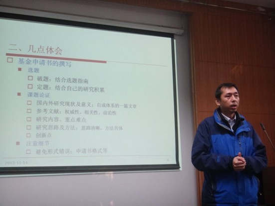 党委书记张吉军,副院长才惠莲等出席交流会,经济管理学院刘江宜副教授应邀作社科基金申请经验交流报告。