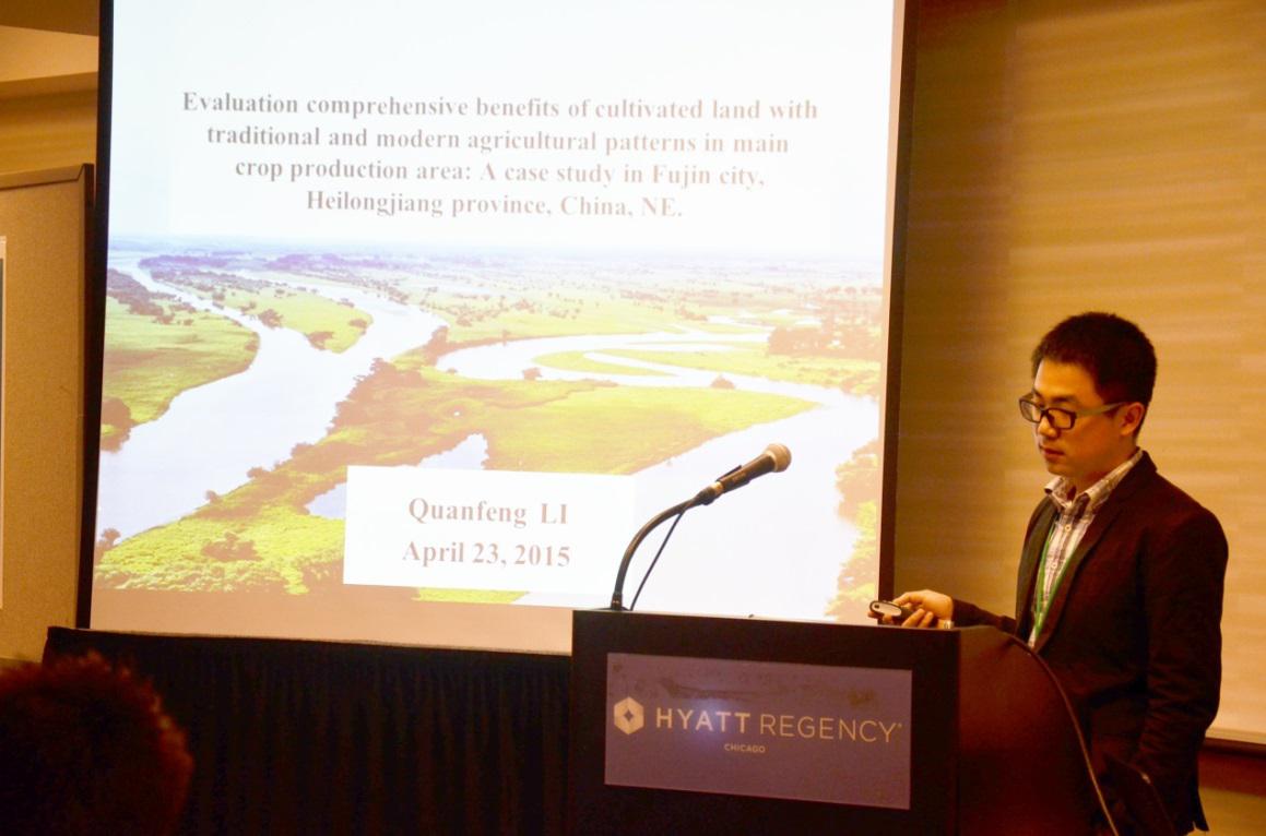 博士生李全峰和杨剩富分别作了题为Evaluation comprehensive benefits of arable land with traditional and modern agricultural patterns in main crop production area: A case study in Fujin city, Heilongjiang province, China和Detecting spatially non-stationary between residential land price and related factors using geographically weighted regression的口头学术报告。他们同来自世界各地的与会者就相关研究问题进行了深入的交流,对现今学界关注的前沿问题有了进一步的认识。