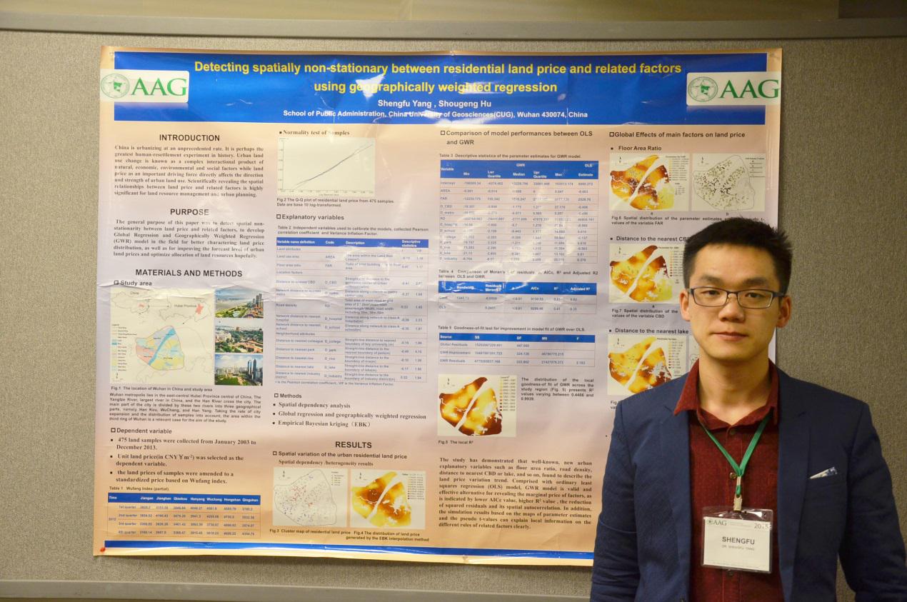 美国地理学家协会(AAG)年会是地理学界级别最高、参与人数最多的国际性学术会议之一,本届会议有9000余名地理学相关专业人士参加,会议以大会报告、成果展示、图书杂志展销等多种形式围绕国际地理学前沿热点问题(城镇发展、气候变化、健康空间、环境重构、地理教育等主题)和地理学研究方法新进展等进行讨论,是地理学者间进行学术交流的重要平台。