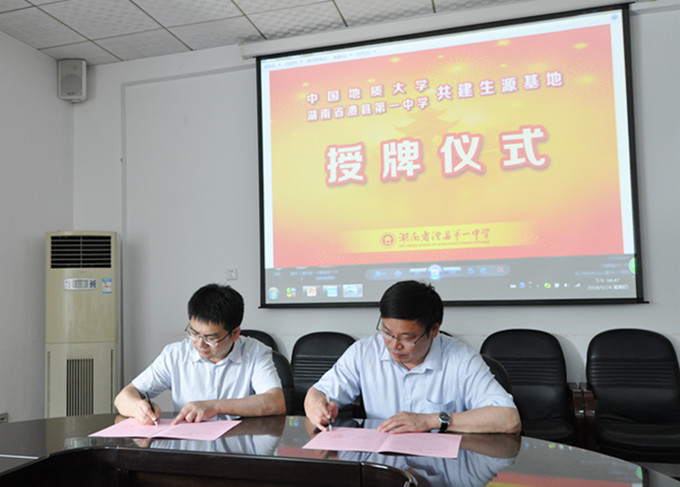 5月25日,副院长龚健回到母校澧县一中,亲自把中国地质大学优质生源基地牌匾交给学校校长毛善新。座谈会上,龚健从学校概况、培养特色、学校环境、学科概况等方面详细介绍了中国地质大学的基本情况,并重点介绍了学校积极推进“教授选才”的自主招生模式及相关优惠政策。“作为澧县一中人,深知母校的办学底蕴和办学实力,我会在中国地质大学等着学弟学妹们的加入,帮助他们实现人生理想。”毛善新校长对龚健的到来表示热烈欢迎,并建议利用更多的机会进行互访活动,以促进高中生对高等院校的了解,加强高考研究,实现高考双赢。