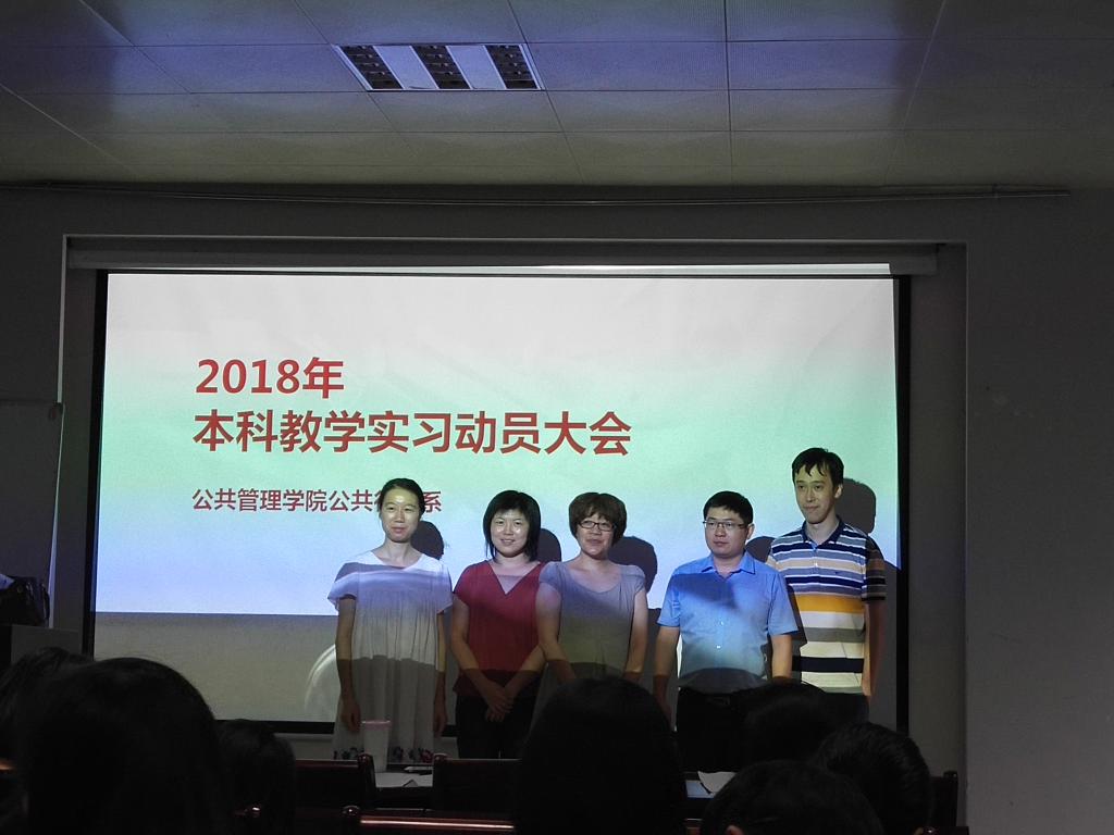 公共行政系在实验楼101召开了2018年本科教学实习动员大会。出席会议的有秭归实习的带队队长田家华教授、陈星博士,洪山区政府实习的指导老师苏黎兰博士,孝感实习的指导老师黄砺博士,以及2016级的行政管理和公共事业管理专业的全体本科生。本次会议由公共行政系系主任李世祥教授主持。