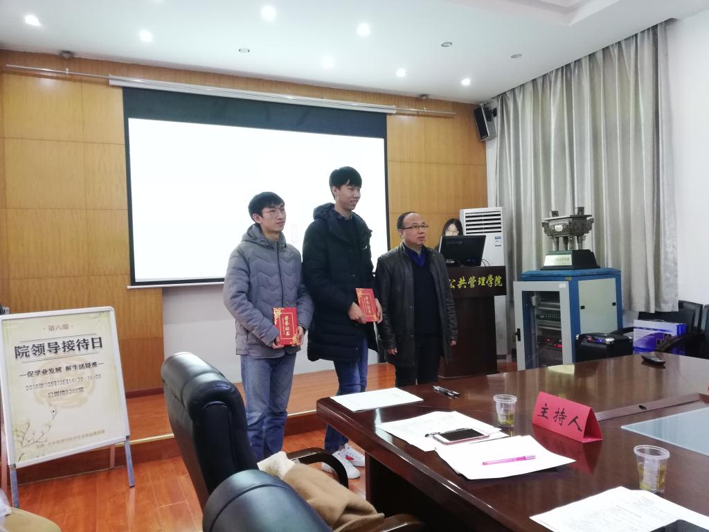 (通讯员 吴 波)2018年12月13日下午,第六期院领导接待日活动在公管楼B209会议室顺利举行。院党委书记张吉军老师、党委副书记刘国华老师、副院长王忠老师、法学系副主任刘琦老师、公共行政系主任李世祥老师、区划系主任刘超老师、土地系刘成老师、教务科高秋丽老师、团委副书记李姝慧老师、辅导员吴波老师以及各年级同学代表50余人参加本次活动。