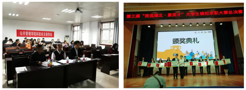 四、科创实践成果:2018年,学院大学生基础科研训练计划结题9个、立项10个。国家级大学生创新创业项目立项11个,其中重点项目3个。2016级本科生文颖慧、2016级硕士研究生高静获校级科技论文报告会特等奖,3人获校级一等奖,6人获校级二等奖,36人获校级三等奖。学院4支领航、启航团队参加校级自主创新资助计划中期答辩,全部通过。校级“英才工程”人才培养计划立项“领袖计划”1个、“科学家计划”1个。4支队伍参加第三届“创青春”大学生创业大赛,其中2015级本科生张莹负责的《游品慧K-12科普实践平台》获第三届“创青春”大学生创业大赛省赛铜奖;2015级本科生张莹参加的《游品慧青少年科普实践服务平台开发及运营》获第四届“互联网+创新创业大赛”实践组省赛铜奖、校级三等奖。学院2015级王明翀获得第三届“我选湖北·聚英才”大学生模拟求职大赛冠军。