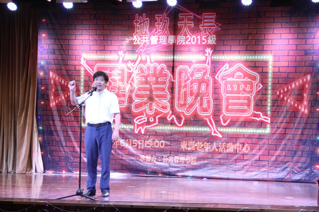2015级充满怀旧气息的“地玖天长”毕业晚会在老年人活动中心成功举行。学院党委书记张吉军、院长王占岐、副院长才惠莲、副院长龚健、党委副书记刘国华、院直和各系教师代表以及2015级全体毕业生参加本次晚会。