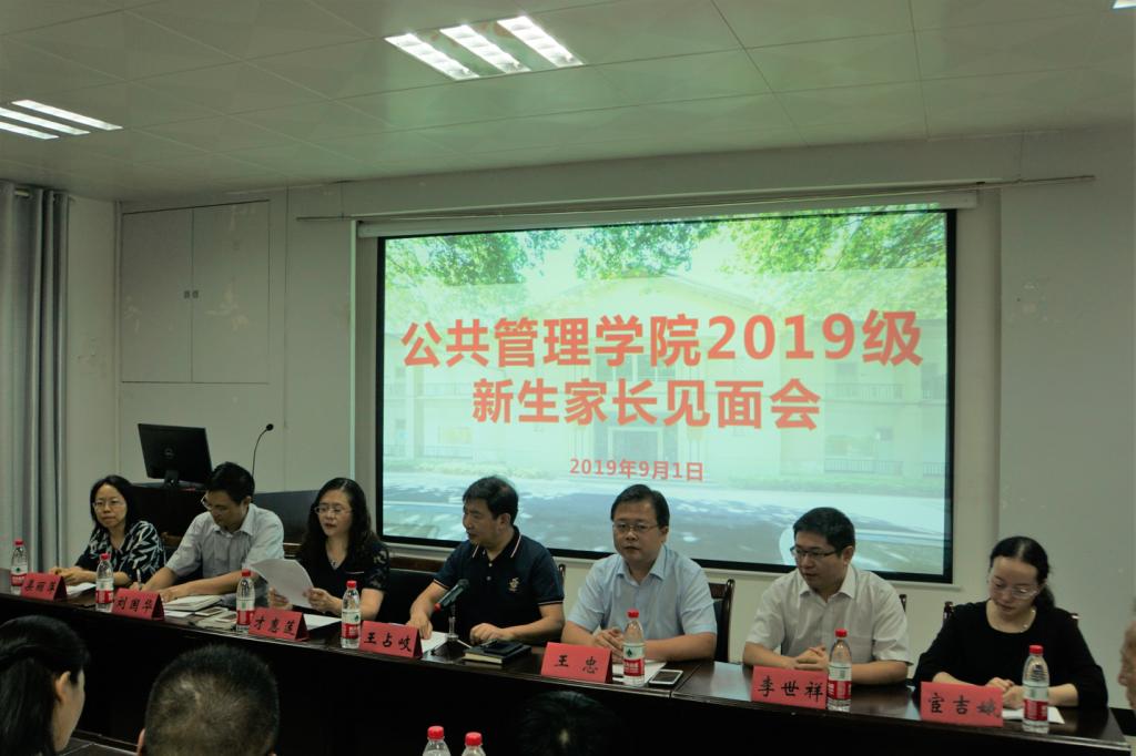 2019级新生家长见面会在公管新楼101报告厅召开。本次见面会由才惠莲副院长主持,院长王占岐、副院长王忠、党委副书记刘国华、各系负责人或专业教师、2019级新生兼职辅导员李文伟以及近百名学生家长参加。