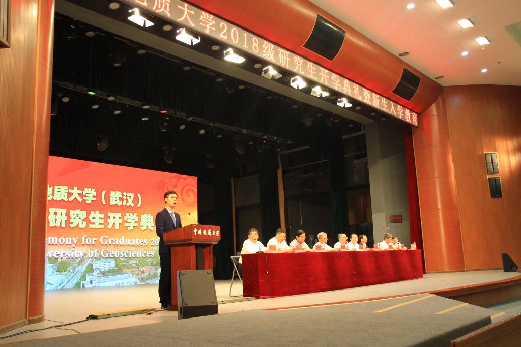 【编者按】9月8日上午,2018级研究生开学典礼在弘毅堂举行。中国科学院院士殷鸿福,校领导何光彩、王焰新、成金华、唐辉明、赖旭龙、王华、刘杰,党委常委、组织部部长储祖旺,各研究生培养单位、相关职能部门负责人及2018级研究生新同学参加典礼。副校长赖旭龙主持典礼。学校新闻链接://www.yhacg.net/info/10506/90265.htm