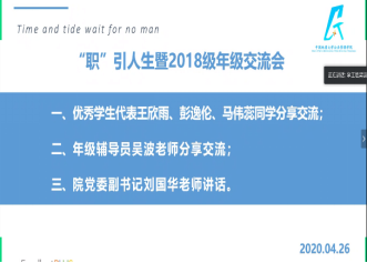 4月26日19:00,2018级本科生年级线上交流会在腾讯会议平台召开。学院党委副书记刘国华老师、辅导员吴波老师、2018级本科生全体同学参加本次交流会。本次交流会特别邀请高年级优秀学长学姐代表王欣雨、彭逸伦、马伟蕊做成长分享。交流会由吴波老师主持。
