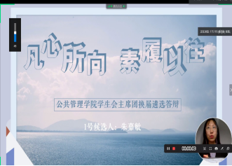 随后,会议进入第四阶段:选举产生第五届学生委员会委员。在狄致远同学介绍完答辩流程后,朱嘉敏、索云龙、刘明竞雪、宋文恬、尹明辉五位主席团候选人依次进行了亮相。