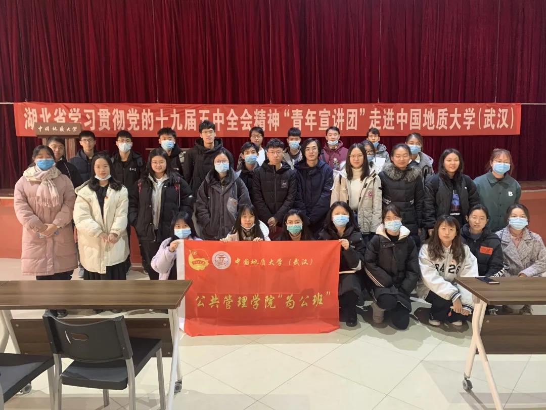 典礼议程进行到了最后一项,“为公班”的同学们集体参与了湖北省学习贯彻党的第十九届五中全会精神“青年宣讲团”走进樱花动漫