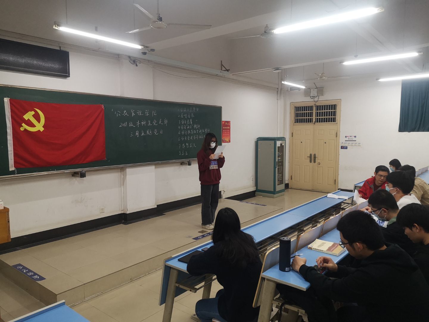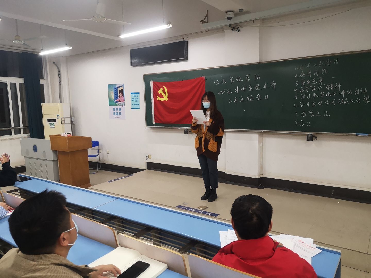 3月25日,2018级本科生党支部全体在北综204召开三月份主题党日。本次主题党日由行管一班、行管二班筹办。主题党日召开前,支部全体同志进行了体温测量,并全程佩戴口罩参会。学院党委副书记刘国华、党支部书记吴波参加本次主题党日。党支部组织委员朱嘉敏主持会议。