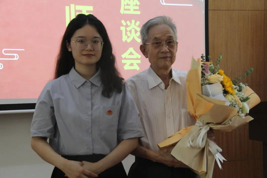 座谈会第五项,学生代表发言。173181班班长、院本科生学生会上一届执行主席宋文恬和2021级硕博连读研究生张宸,代表全院学生对老师们不辞辛劳的培养与灌溉深表感谢,表达了继续带着在学院收获的品质与精神、带着老师们的嘱托,立志攀登一座又一座高峰的信心和决心……