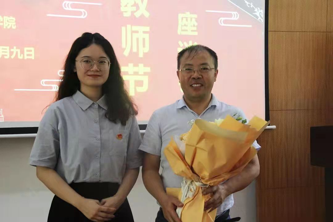 座谈会第二项,学生代表献花。学生代表先后向陈安民、杨力行、李江风、张吉军、王占岐、刘国华、才惠莲、胡中华、刘琦、龚健等教师代表一一献上鲜花,表达感恩与祝福。