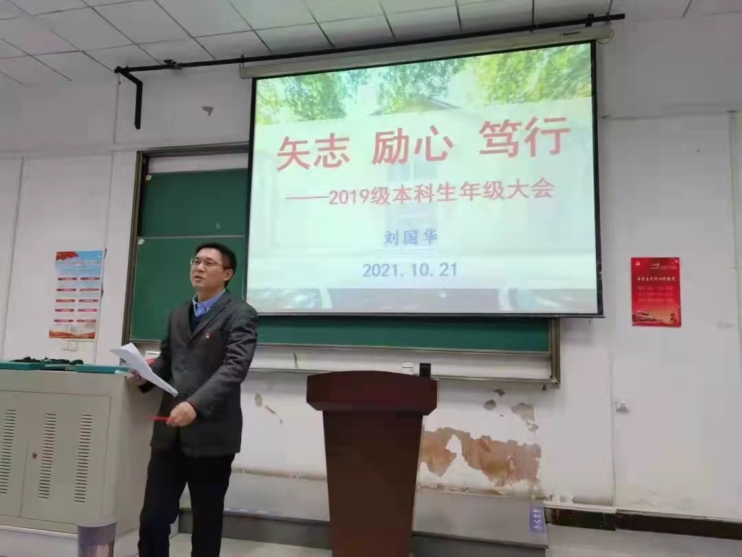 10月21日下午在教三楼207阶梯教室召开年级大会。学院党委副书记兼2019级辅导员刘国华老师,朱悦、于嘉宁、索云龙、袁可怡四位成功考研保研的学长学姐以及2019级全体本科生参加此次大会。大会由院党委副书记刘国华老师主持。