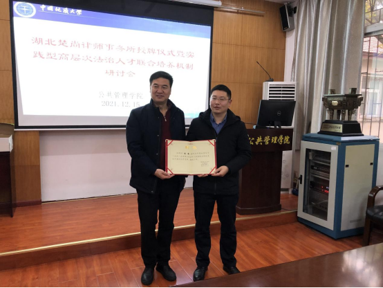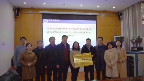 随后,进行了“人才培养基地”授牌和“法律硕士兼职导师”聘书颁发仪式。