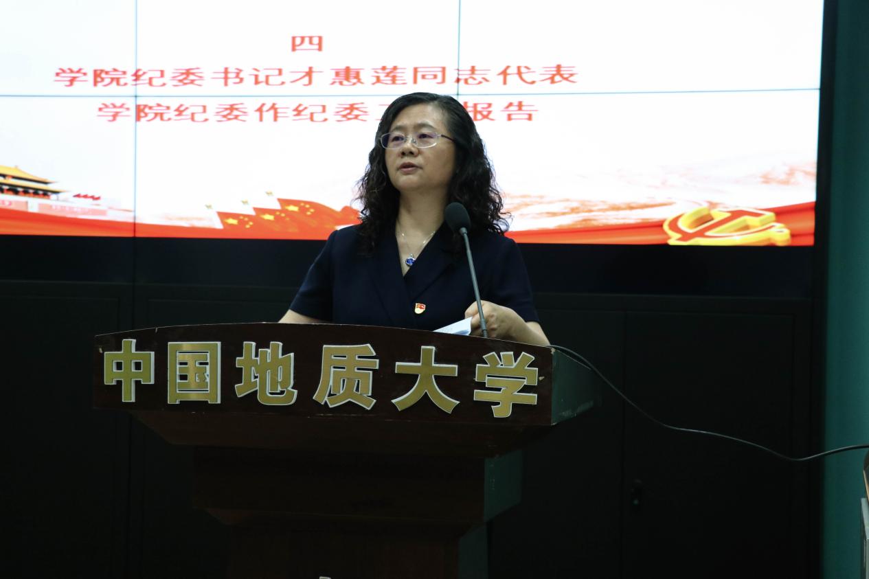 学院纪委书记才惠莲代表纪律检查委员会作纪委工作报告。