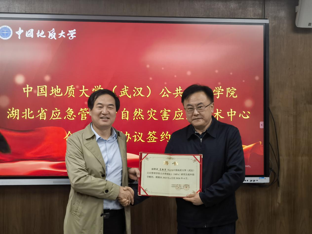 胡守庚院长致欢迎辞,代表学院对贾新军主任一行表示热烈的欢迎。他介绍了学院的基本情况以及应急管理专业建设取得的进展,希望双方发挥各自领域优势,加快推进资源共享,创新合作模式,促进共同发展。贾新军主任介绍了自然灾害应急技术中心的基本情况,期待双方以此次合作框架协议的签订为契机,全力推动各项合作落地落实,携手实现合作共赢。