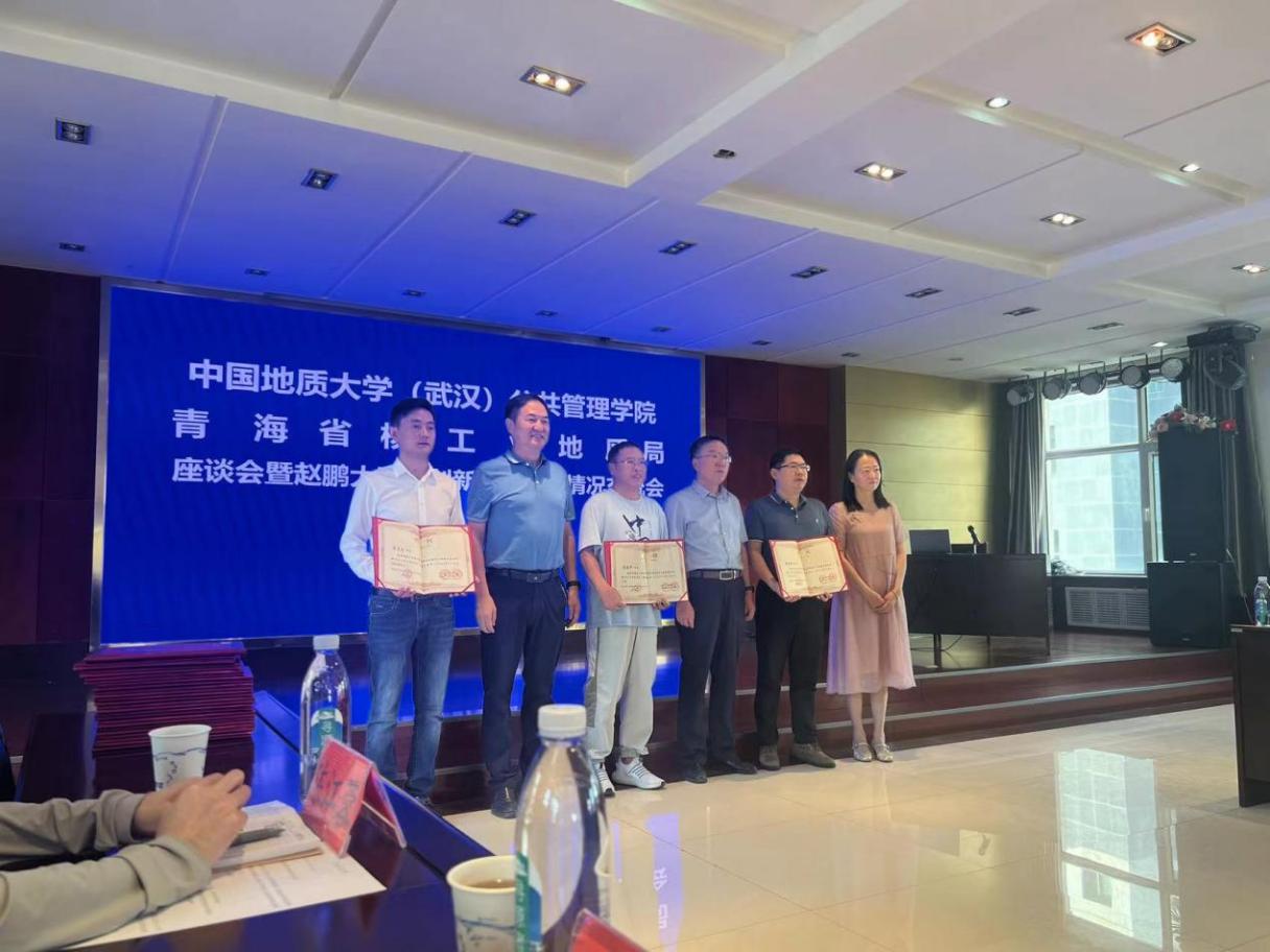 8月1日上午,张宽裕书记一行在青海省核工业地质局开展座谈交流。青海省自然资源厅科技发展合作处处长许世富,青海省核工业地质局党委书记、局长李为民等参加座谈会。座谈会上,张宽裕书记介绍了学院的基本情况及支撑院士创新中心建设情况,李世祥教授汇报“湟水流域(西宁段)水污染治理关键技术预研发及应用”及“青海昆仑英才高端创新创业人才项目”等院士创新中心目前主要在研项目的进展情况。雷占昌副站长汇报了赵鹏大院士创新中心的运行情况和取得的成果。随后,双方围绕赵鹏大院士创新中心建设及人才培养、项目合作等方面进行交流研讨。此外,主要领导为院士创新中心工作站站长、副站长以及学术委员会委员颁发聘书。