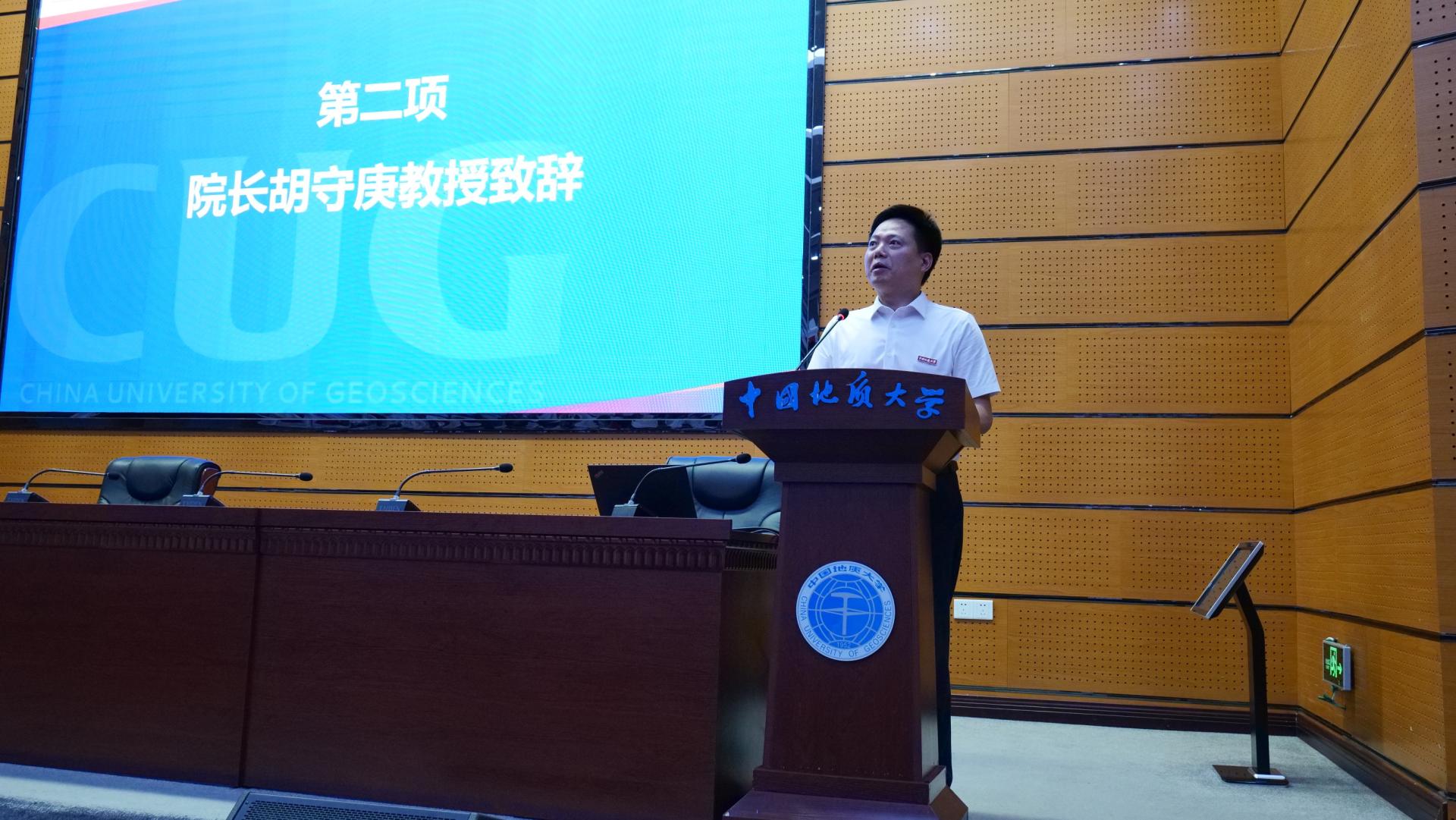 院长胡守庚以“剥开纷繁守本心,最是睿智公管人”为题致辞。他代表全院师生对2023级新生们的到来表示热烈的欢迎。并回顾了学院和学校的发展历史,提及近年来学院各项事业发展取得的不菲成就,告知同学们选择在学院求学和生活一定不会辜负大家的期待。同时,对2023级新生提出几点希冀,期望同学们要树立天下为公的情怀、锤炼善治以管的本领、争做公序良俗的先锋,在心中都种下“立公心、成善治、育先锋”的种子,为学院“卓越公管、开放公管、和谐公管、幸福公管”的发展目标绽放出最美的青春奋斗之花。