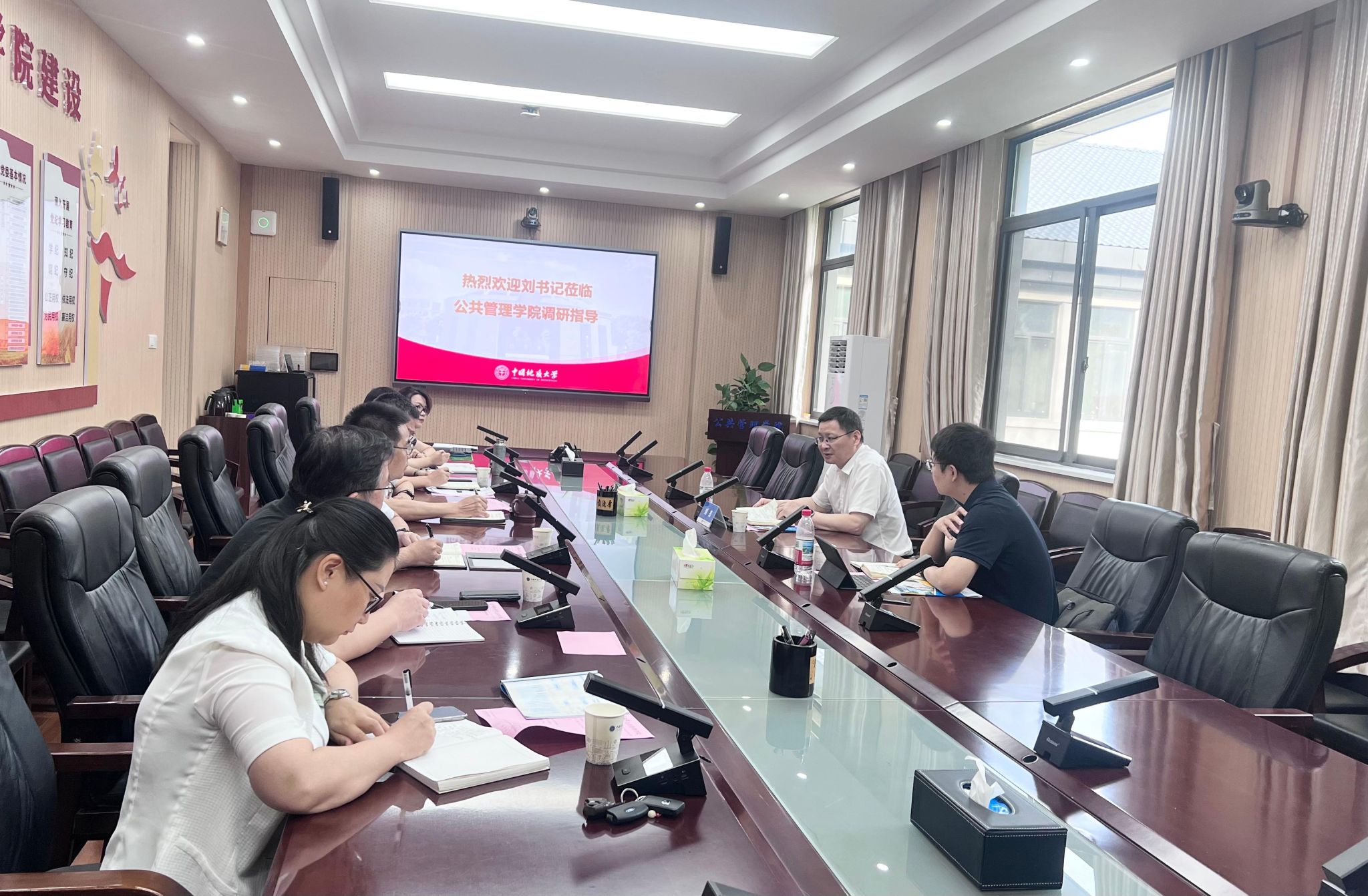 刘杰书记认真听取汇报,并就关键问题与学院班子成员进行深入交流。他对学院定位清晰和谋划长远给予了充分肯定。结合国家教育强国战略部署、湖北省战略支点建设要求以及学校发展目标,刘杰书记对学院未来发展提出了六点明确指导意见:一是坚持立德树人根本任务。加快构建拔尖人才培养体系,强化学生政治素养、实践能力与创新思维的融合培养。二是强化有组织科研攻关。整合现有科研力量,构建“项目牵引+平台支撑”的协同创新机制,力争在承担重大项目和产出标志性成果上取得突破。三是聚焦自然资源管理特色。围绕国土空间规划、资源环境政策等方向打造特色优势;法学专业应突出自然资源法治特色。四是引育并举强师资队伍。实施精准引才策略,推行分层分类培养,持续优化师资队伍结构。五是深化开放办学与国际合作。积极拓展国际合作交流渠道,提升学科国际影响力。六是提升社会服务能力与成效。深化与自然资源部、应急管理部等部委合作,拓展服务地方政府和企业的渠道,大力推动科研成果转化应用。