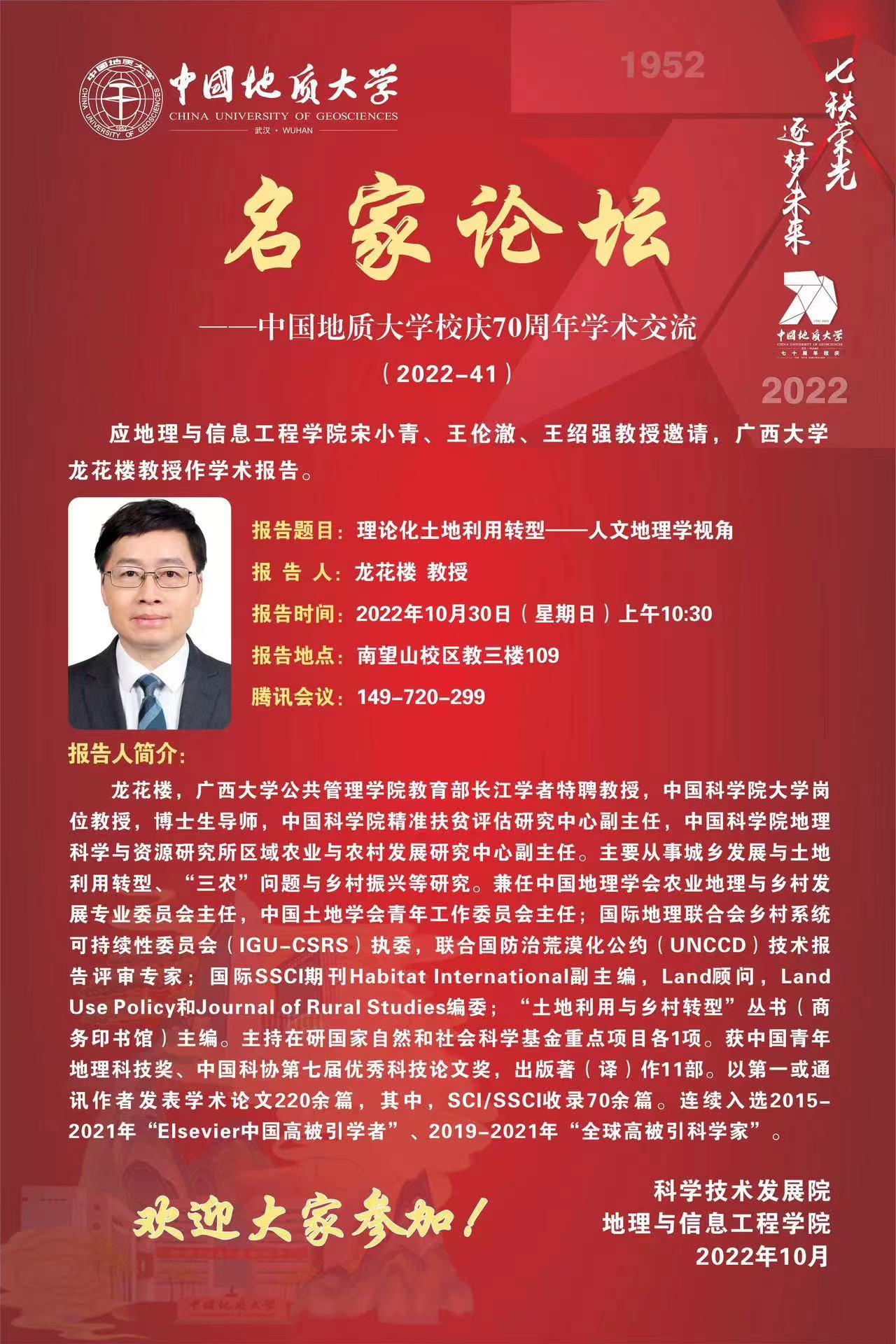 【讲座预告】理论化土地利用转型——人文地理学视角(2022年10月30日)