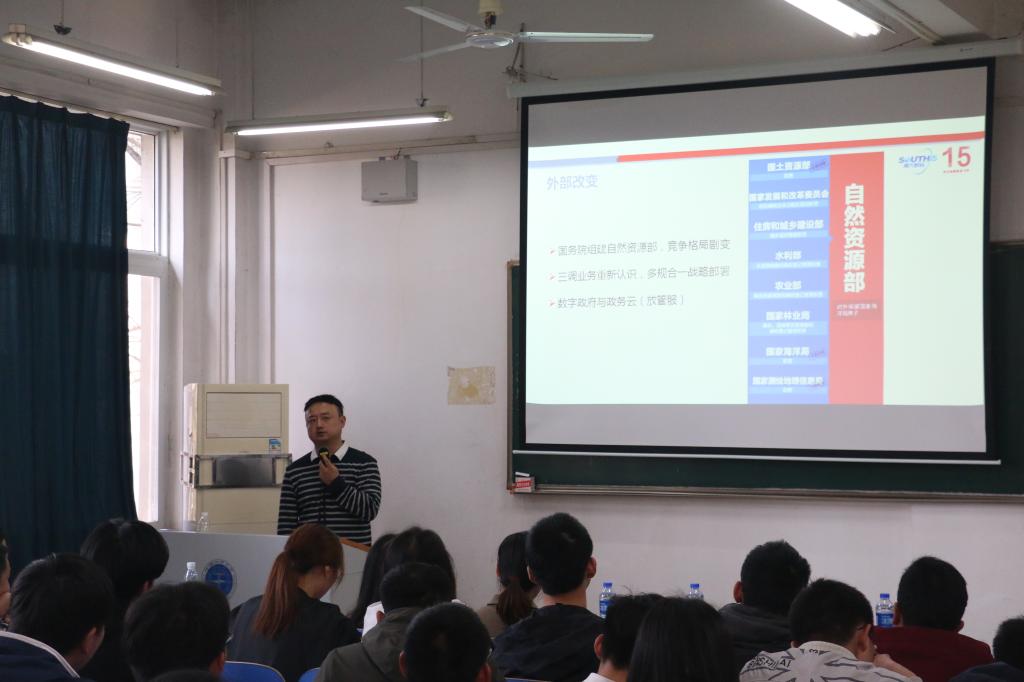 招聘会开始,学院党委副书记胡文勤向参加招聘的同学简单介绍了南方数码公司和参会的公司领导,胡书记提到南方数码公司是中国领先的地理信息产业服务商,同时和我们学校有着很大的源源,每年我们学校、学院都有到南方数码公司工作的校友、院友,希望前来招聘的同学能够将学校和公司的友谊继续传承下去。接下来南方数码北方总部总经理范铀向参加招聘会的同学们系统地介绍了南方数码公司业务所属的整个行业的发展前景及公司自身在业内的地位及发展现状,并针对此次招聘会涉及到的岗位逐一进行了介绍。宣讲结束后,南方数码公司对前来应聘的同学进行了现场面试,效果良好,南方数码企业对我校学生的综合素质给予了高度肯定。(通讯员:李姝慧)